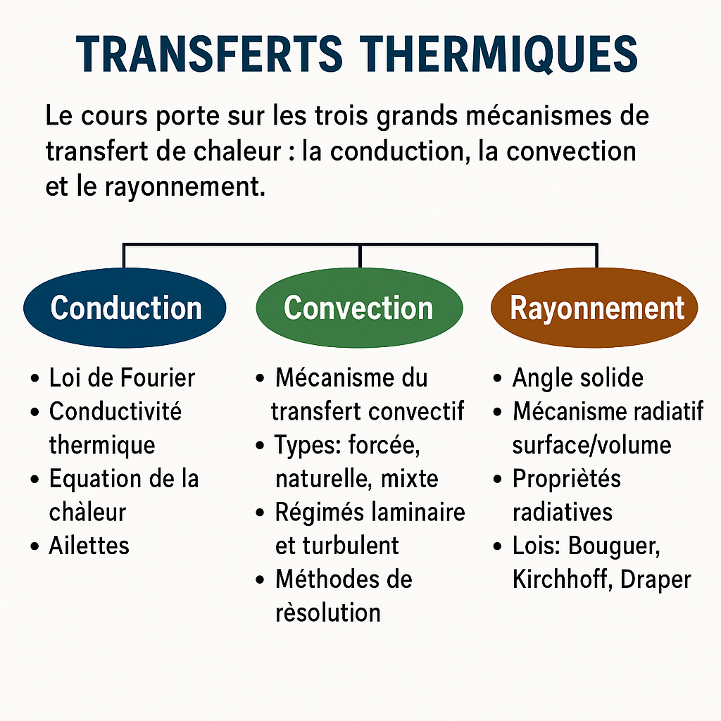Ce cours étudie les trois modes principaux de transfert de chaleur :